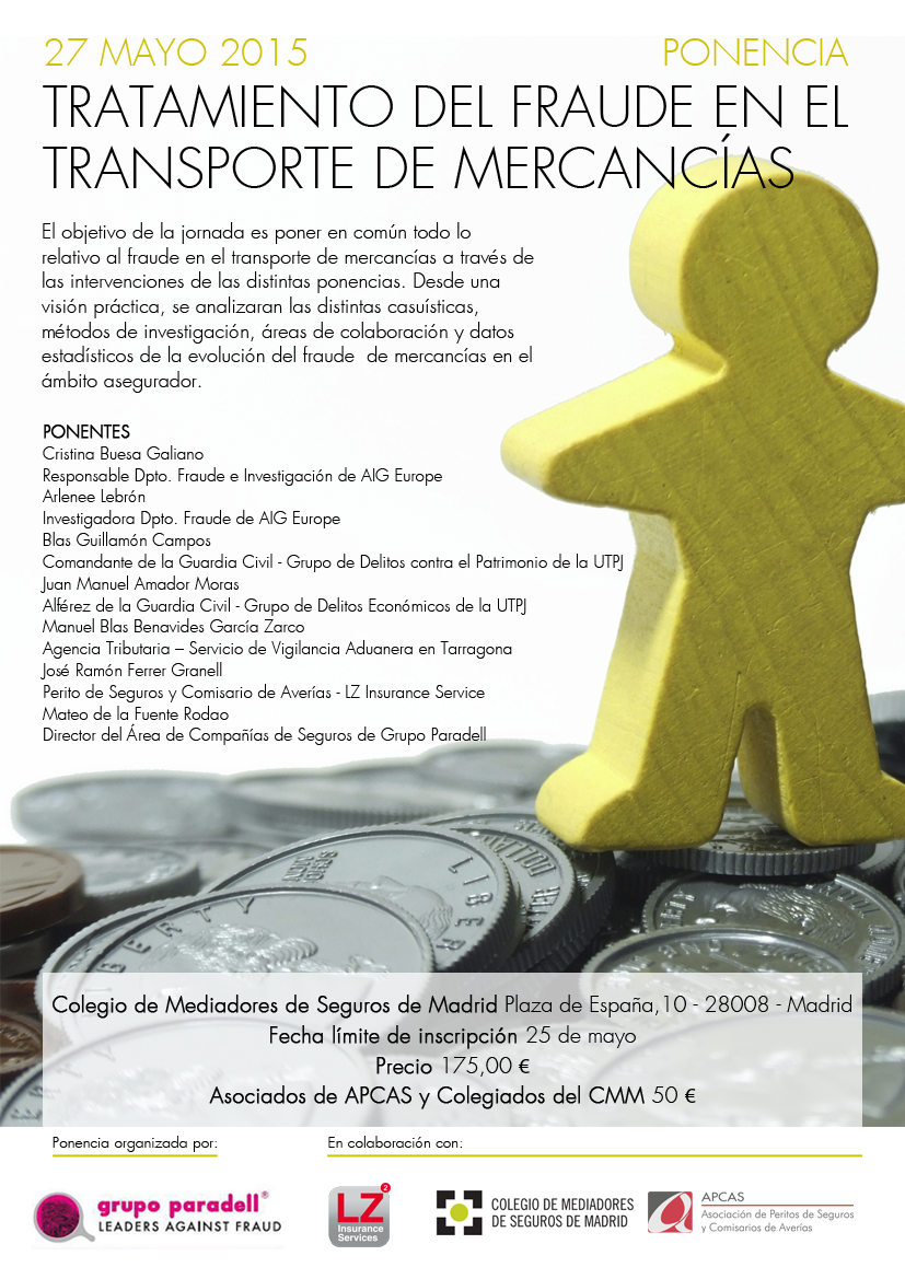 El miércoles 27 de mayo se celebrará en Madrid la ponencia sobre el “Tratamiento del fraude en el transporte de mercancías” organizada por Grupo Paradell en colaboración con el Colegio de Mediadores de Madrid, LZ Insurances Services y la organización autonómica de APCAS Madrid.